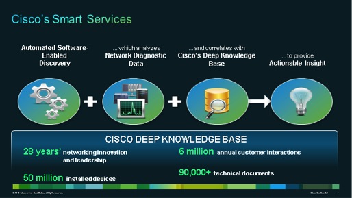 I recently spoke about Cisco’s Smart Services, which use intelligent automation to collect network data, then analyze that data using Cisco’ s deep knowledge base to provide actionable insight to customer and partners. These software-enabled services automate network operations, reduce risk and lower costs – top priorities for any organization, regardless of size.